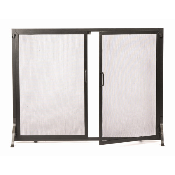 Winston Porter Single Panel Wrought Iron Mesh Fireplace Screen Gate...